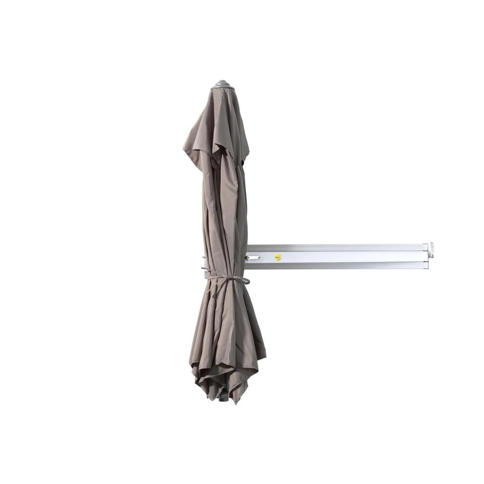Zorg ook op een klein terras of balkon voor voldoende schaduw met deze handige muurparasol! Dankzij het handige muurbevestigingssysteem hoef je geen plaats te voorzien voor een parasolvoet. Bovendien scharniert de aluminium arm gemakkelijk naar alle kanten, zodat je precies waar nodig schaduw kan creëren.