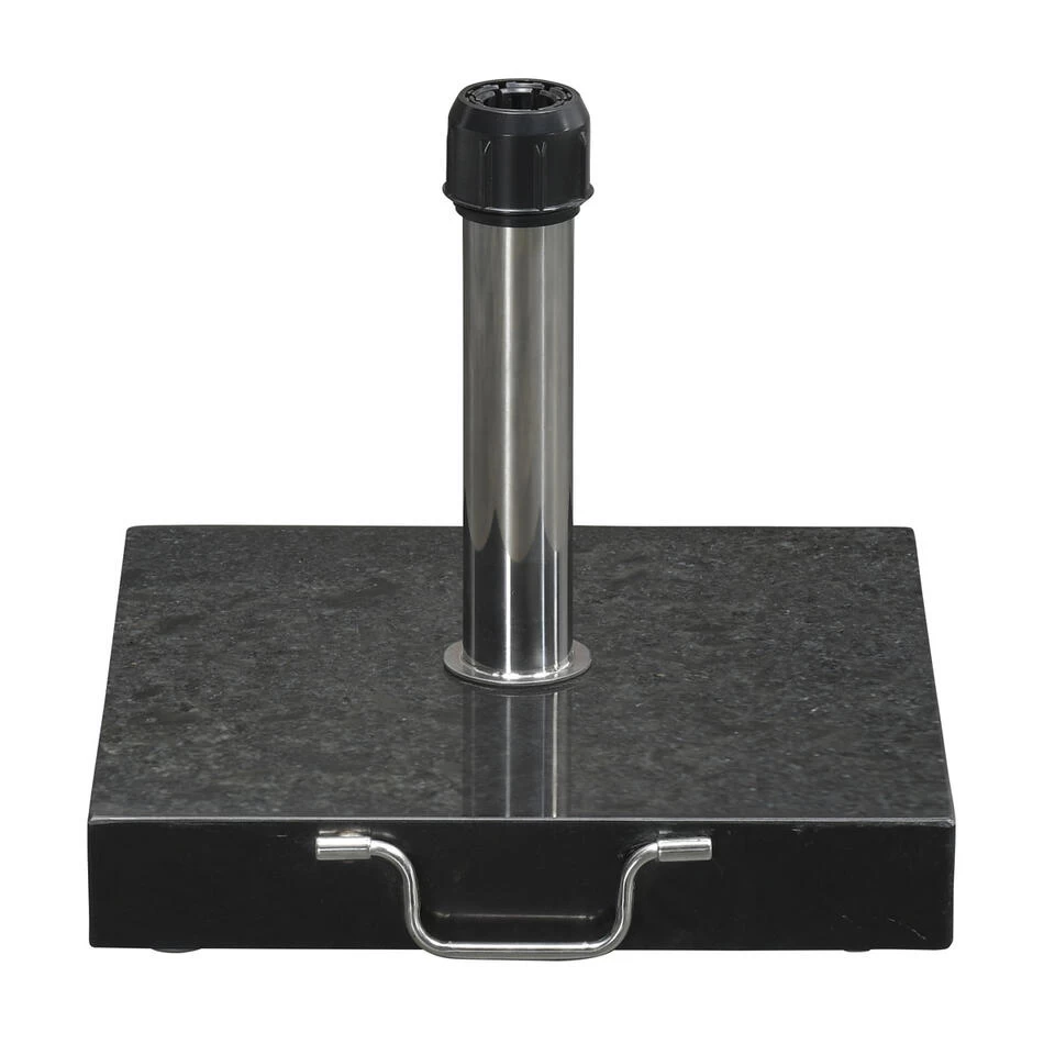 Deze parasolvoet is namelijk vervaardigd uit onderhoudsvrij graniet in de kleur antraciet. De parasolvoet is voorzien van een handig handvat waarmee de voet verplaatst kan worden. De Cosmo granieten parasolvoet is vervaardigd in antraciet kleurig graniet waarvan de bovenzijde is gepolijst, dit geeft de voet een strakke en luxe uitstraling. De parasolvoet is voorzien van twee nylon wielen met aan de tegenovergestelde zijde een mooi RVS handvat. Hierdoor is de voet gemakkelijk te verplaatsen naar elke plek in de tuin. De parasolbuis is gemaakt van RVS en is geschikt voor stokparasols met een maximale buisdikte van 55 millimeter.