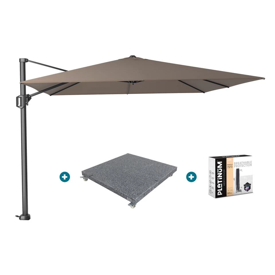 Platinum Challenger T1 3×3 m. parasol Havanna Taupe met voet en hoes
