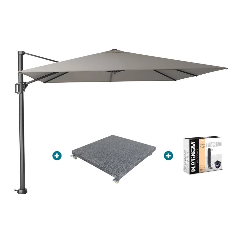 Platinum Challenger T1 3×3 m. parasol Manhattan Grey met voet en hoes