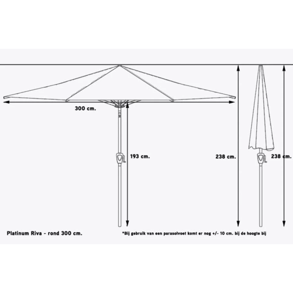 Platinum Riva Stokparasol 3 M. Rond – Antraciet Met Voet En Hoes