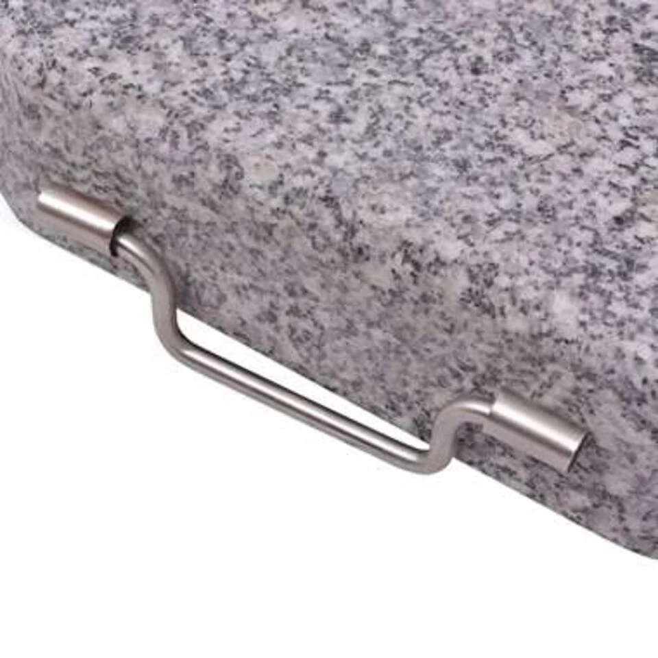 Deze parasolstandaard heeft een gewicht van 30 kg. Hij heeft een roestvrijstalen buis en handgreep. De standaard zelf is gemaakt van gepolijst graniet in combinatie met roestvrij staal. Aan de onderkant kun je wielen monteren en aan de zijkant een roestvrijstalen handgreep, voor eenvoudig transport. Deze voet is geschikt voor parasols met een diameter tot 3 meter. Met behulp van de zijschroeven kan je de parasol in de parasolstandaard bevestigen. De levering is inclusief 2 adapters voor parasolstangen met een diameter van 38 en 48 mm.
