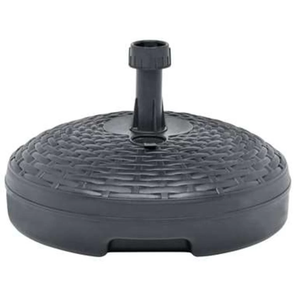 Deze parasolvoet met rattan patroon is ontworpen om te worden gevuld met water of zand. Hij dient als een stevige en stabiele basis voor je parasol.