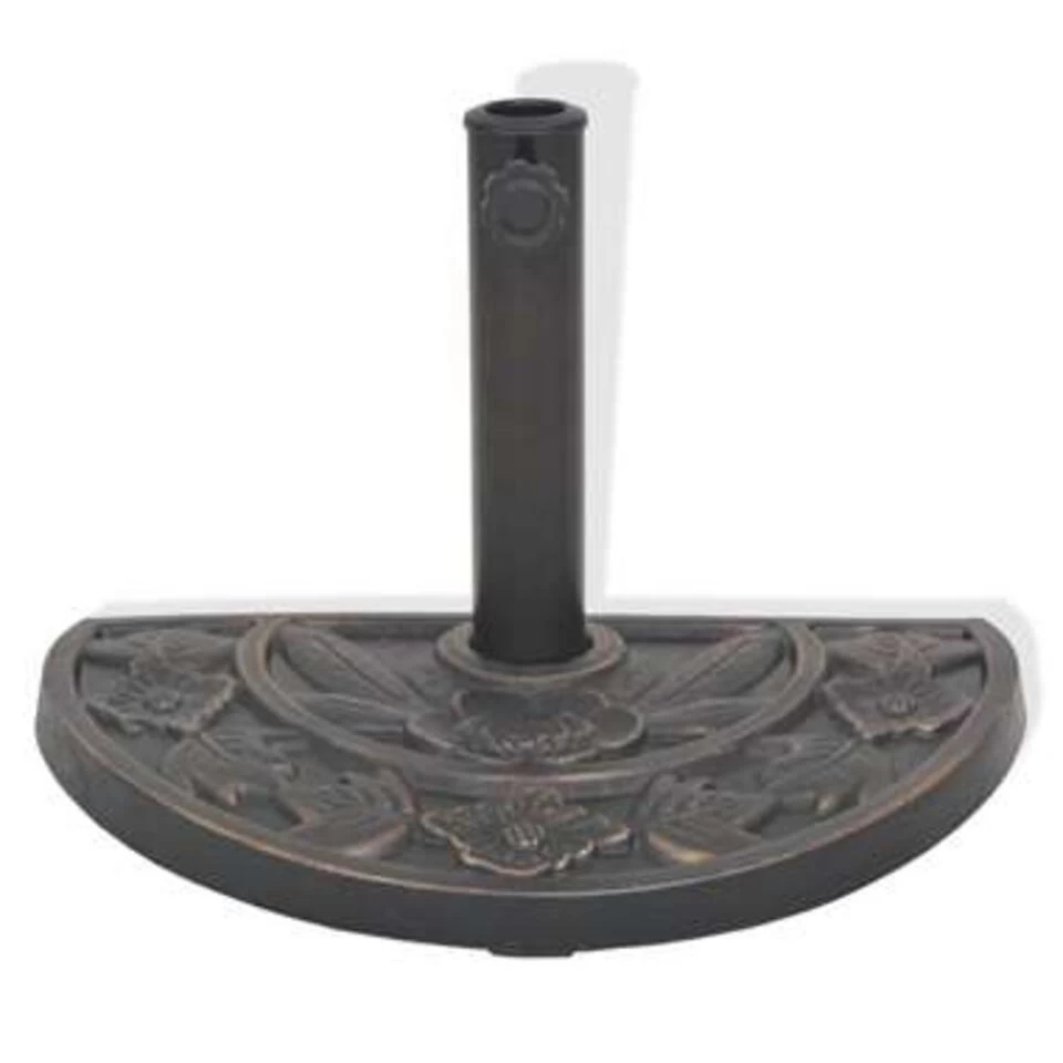 Deze zeer decoratieve parasolvoet is gemaakt van weerbestendig hars maar ziet eruit alsof hij van gegoten brons is gemaakt. Hij heeft een vergrendelingsbout om de paal van de parasol op zijn plaats te houden in de 57 mm buis. 2 adapters zijn inbegrepen, waardoor de voet geschikt is voor parasolpalen met een diameter van 38 en 48 mm.