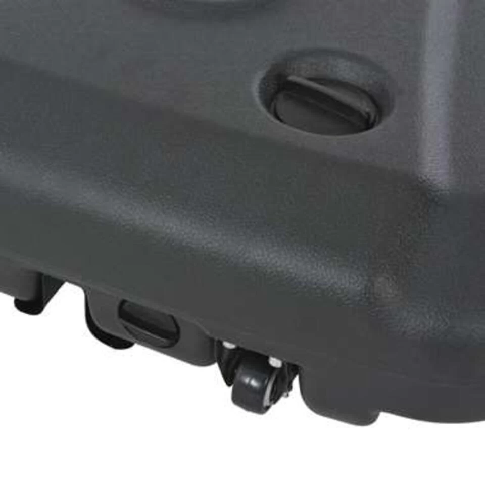 Deze parasolvoet is een praktisch voorwerp om parasols vast te houden en te voorkomen dat ze vallen. Hij heeft 2 wielen die hem gemakkelijk verplaatsbaar maken.