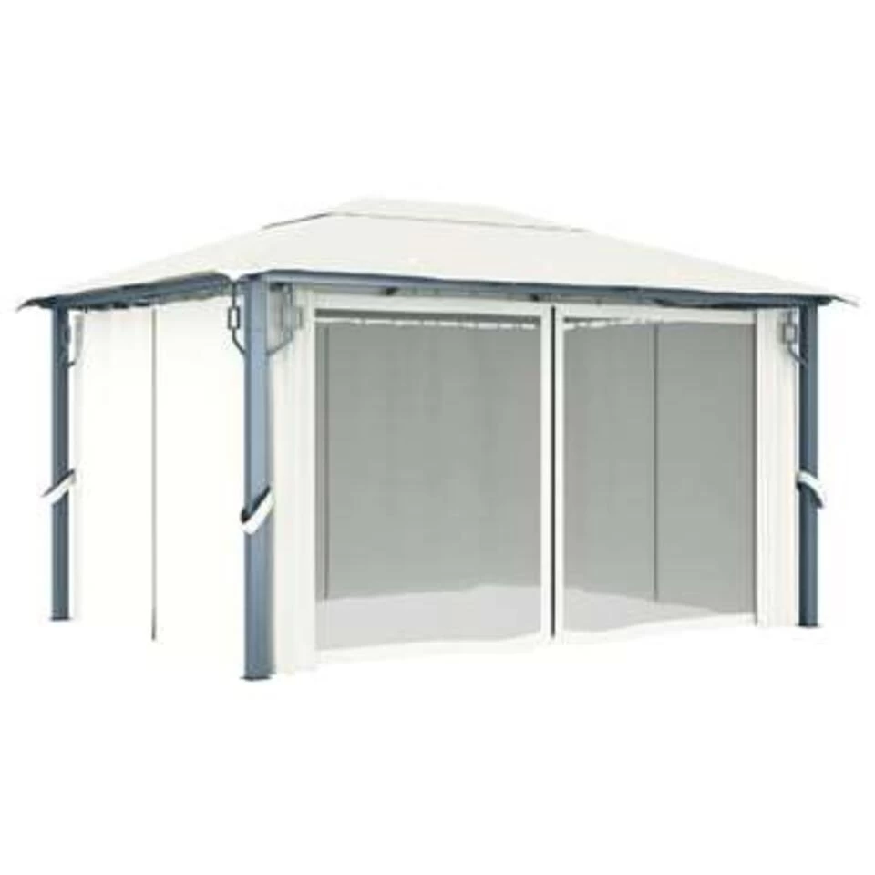 VidaXL Prieel Met Gordijn 400×300 Cm Aluminium Crème
